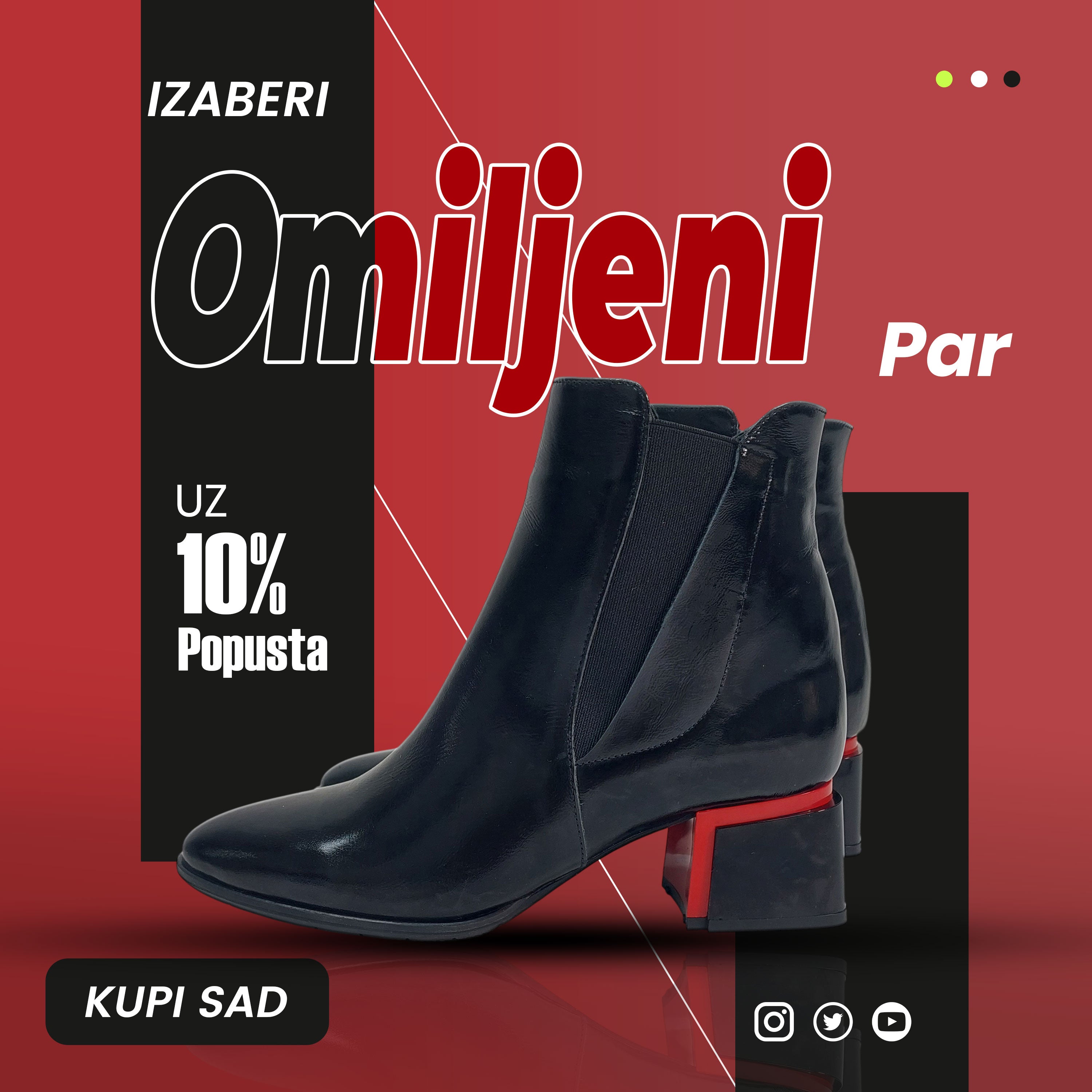 Crne gležnjače izrađene od prirodne kože visokog sjaja, dizajnirane za žene koje traže eleganciju i udobnost u isto vrijeme. Moderni kvadratni blok peta pruža stabilnost i lakoću hodanja, dok elastični...