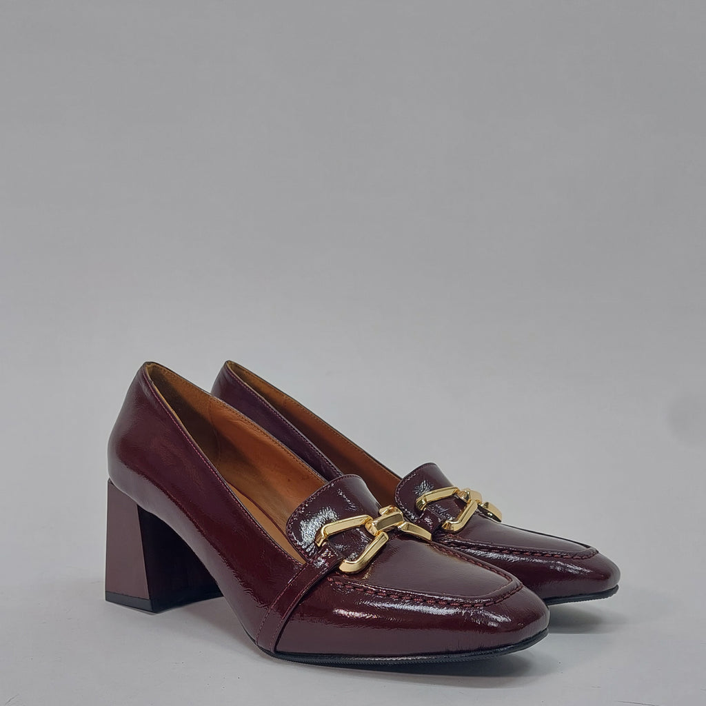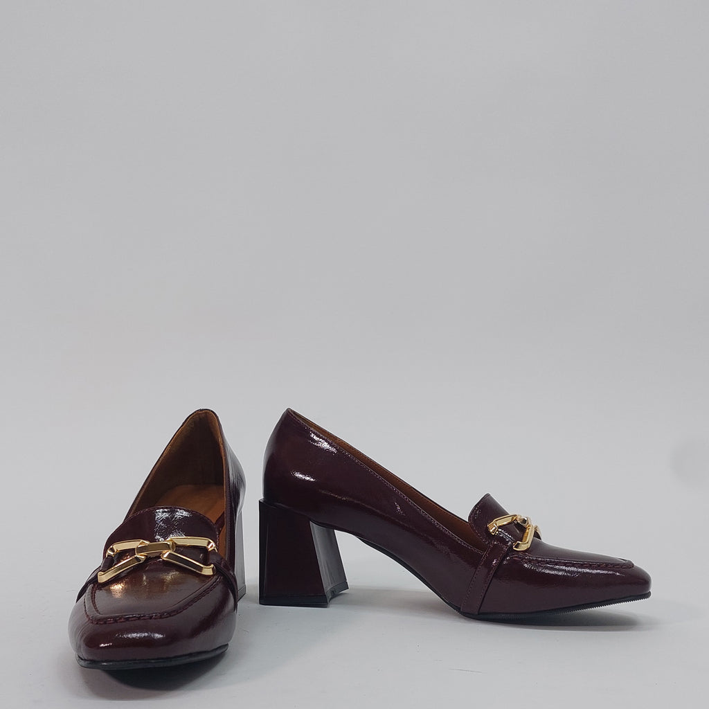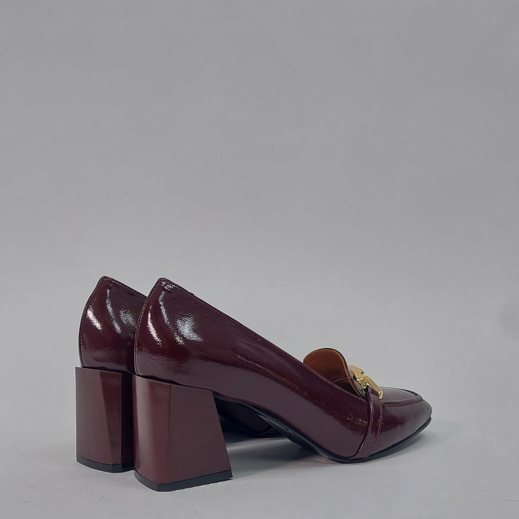 Elegantne salonke izrađene od prirodne kože visokog sjaja, savršen izbor za dame koje žele spoj poslovne elegancije i udobnosti. Klasičan dizajn upotpunjen je dekorativnom kopčom na prednjem dijelu, dok stabilna blok peta pruža sigurnost i lakoću kretanja tokom cijelog dana.