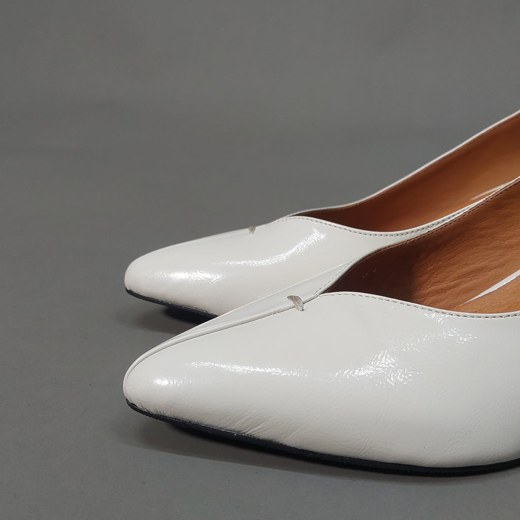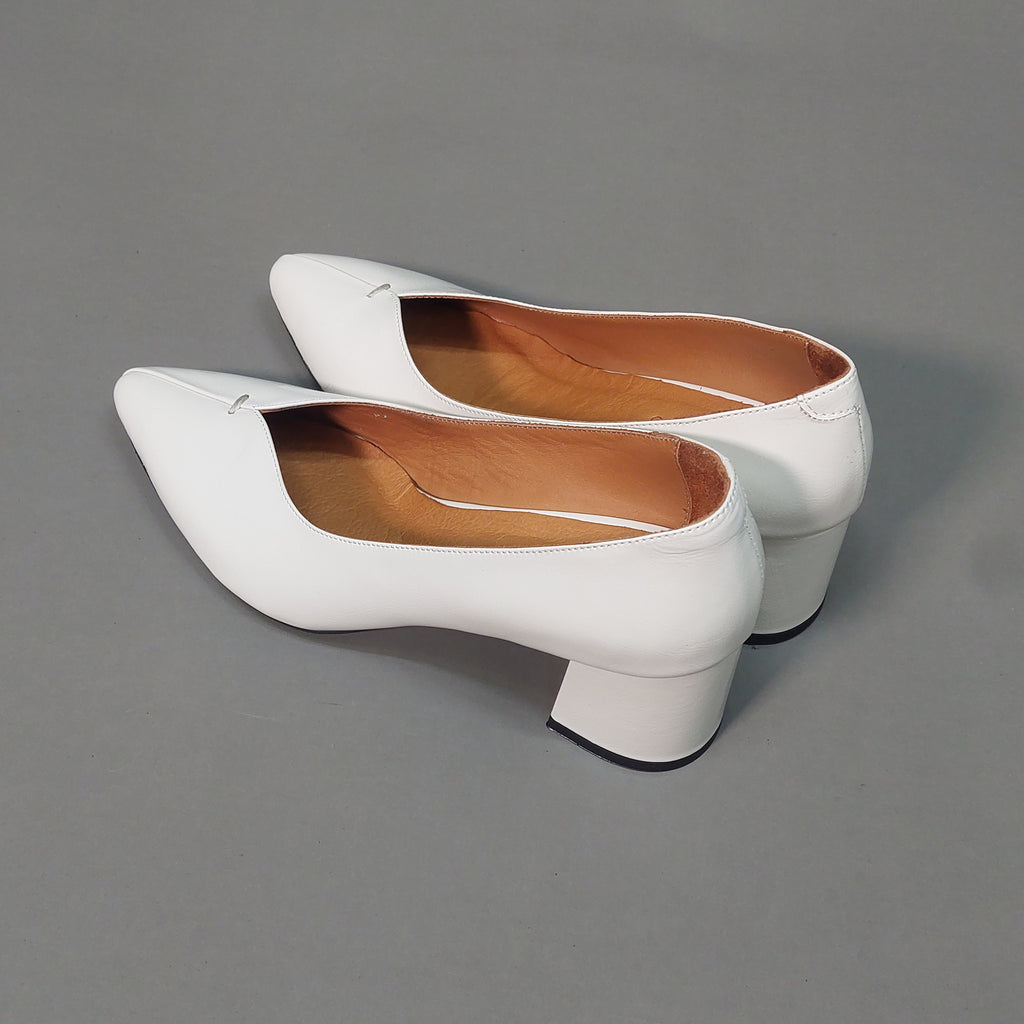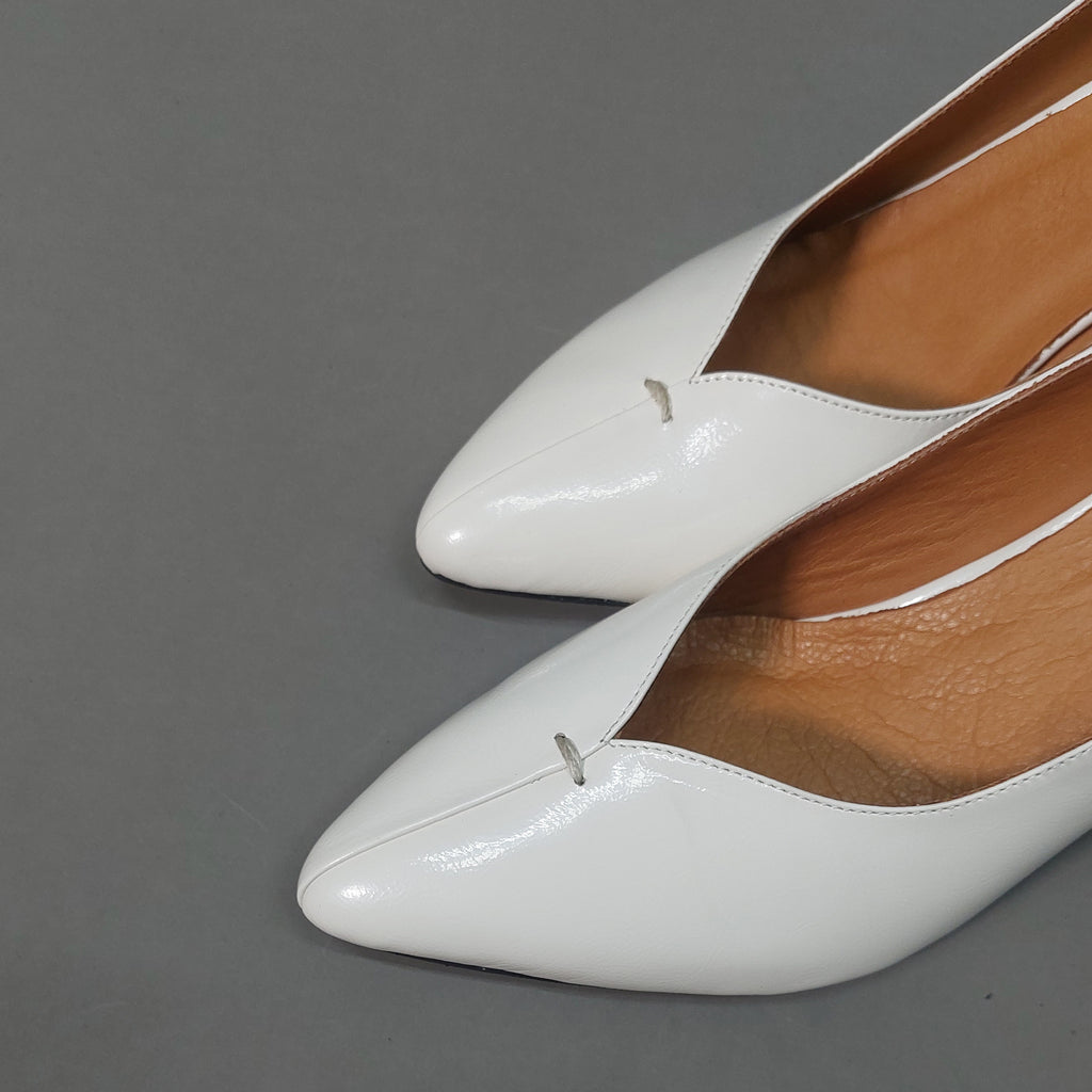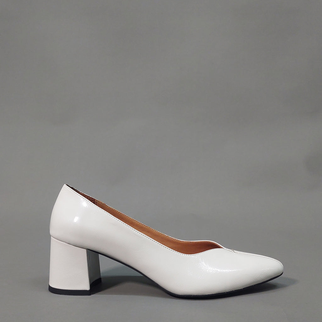 Elegantne salonke izrađene od prirodne kože u bijeloj boji, sa diskretnim sjajem i modernim detaljem na prednjem dijelu. Stabilna blok peta pruža udobnost tokom cjelodnevnog nošenja, dok profinjeni dizajn lako upotpunjuje i poslovne i svečane kombinacije. Unutrašnjost od mekane kože osigurava udobnost i prozračnost.