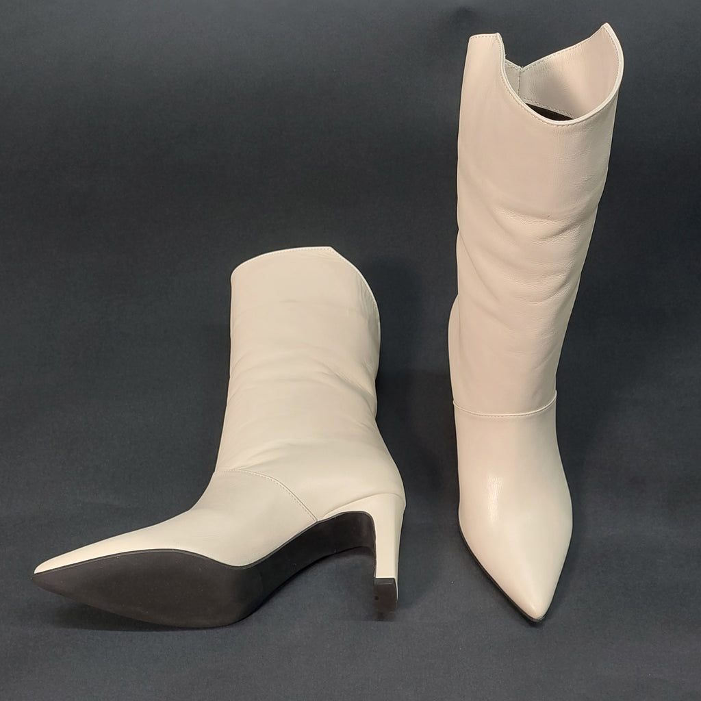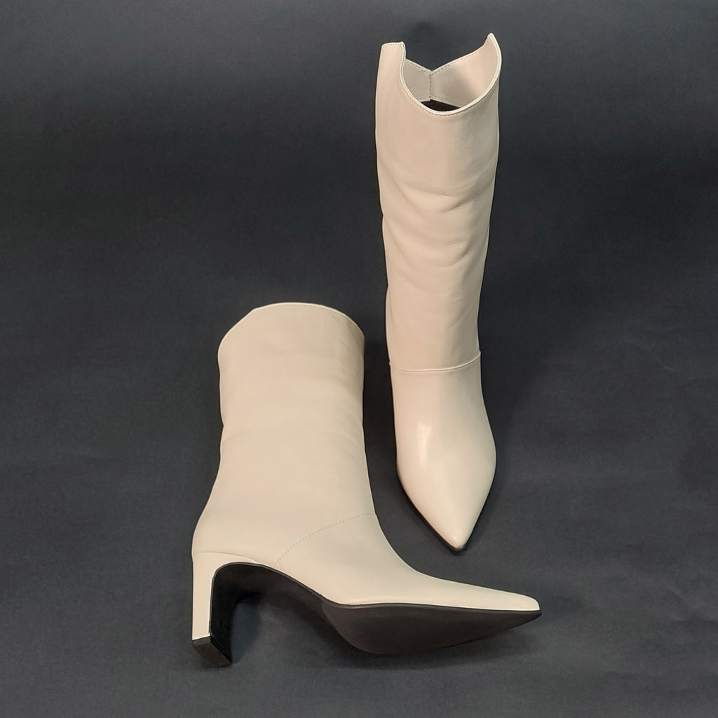 Ove ženske čizme izrađene su od visokokvalitetne prirodne kože koja pruža dugotrajnost, udobnost i profinjen izgled. Njihov minimalistički dizajn sa špicastim vrhom i stabilnom potpeticom srednje visine čini ih savršenim spojem elegancije i praktičnosti.