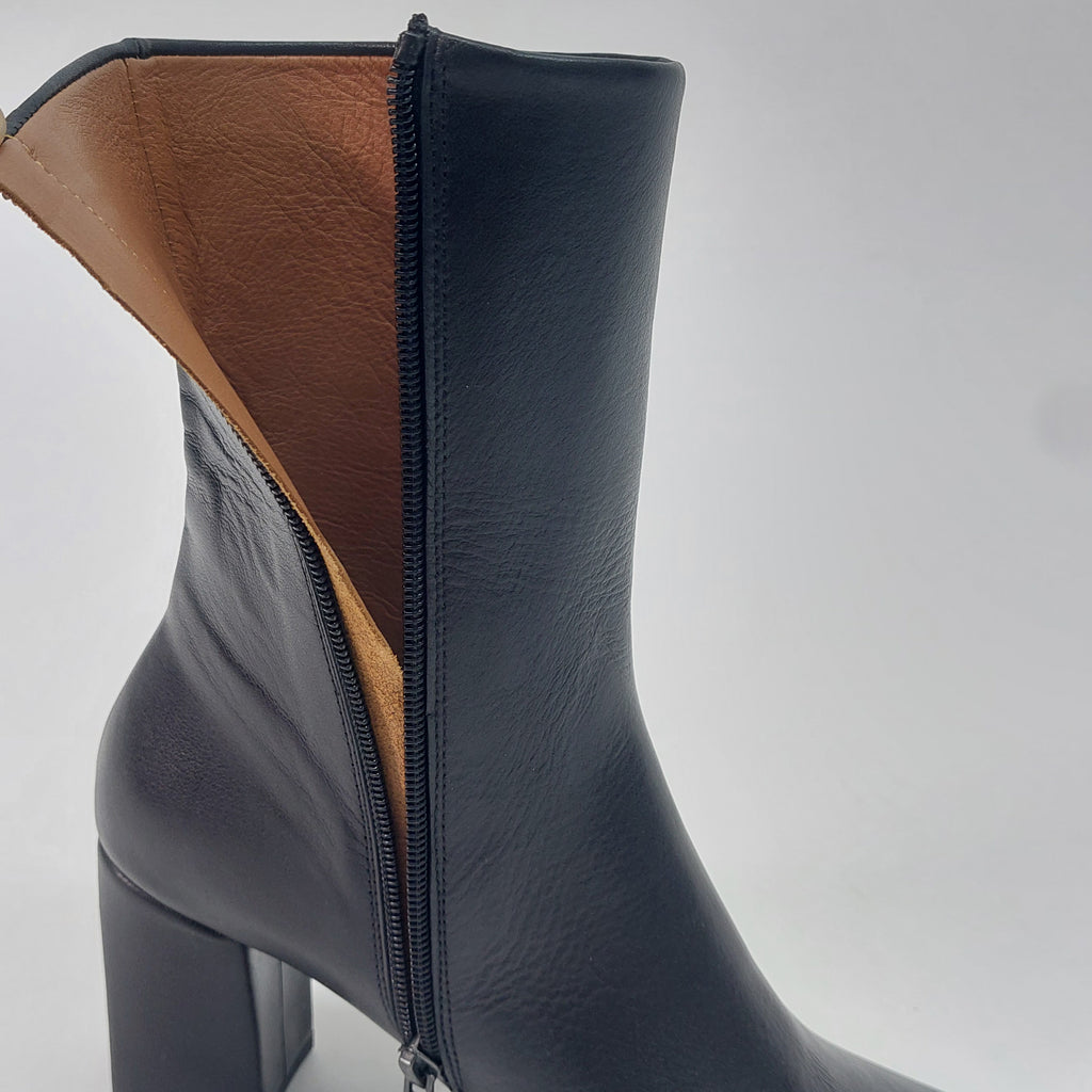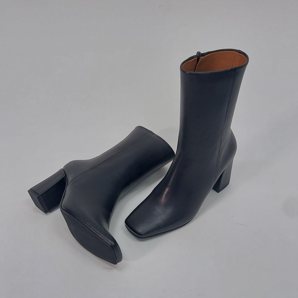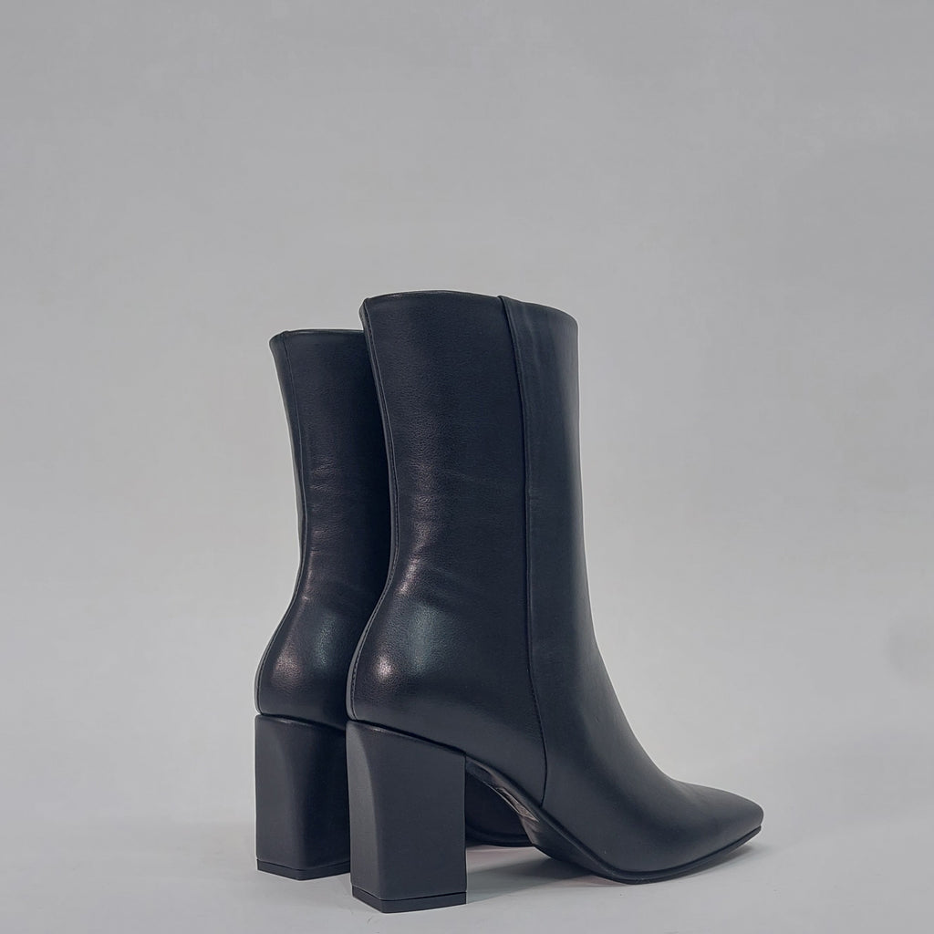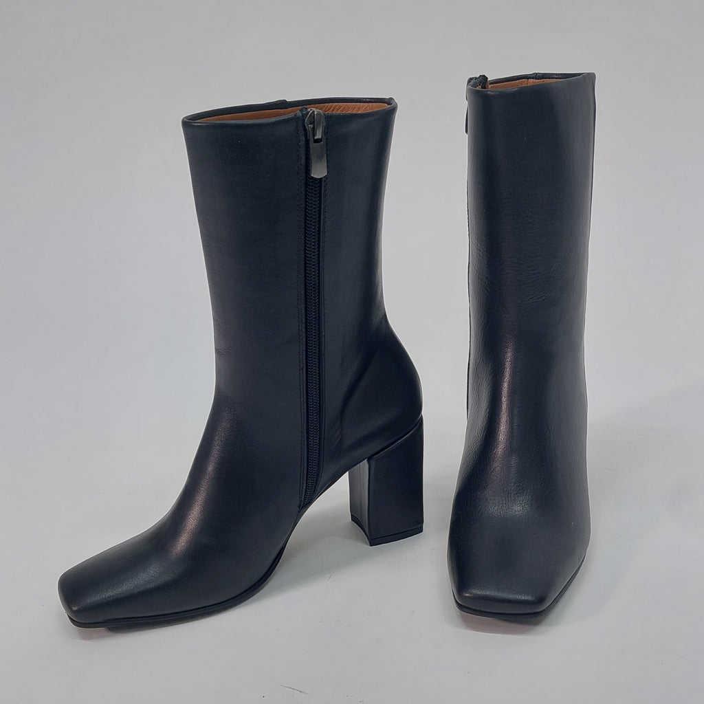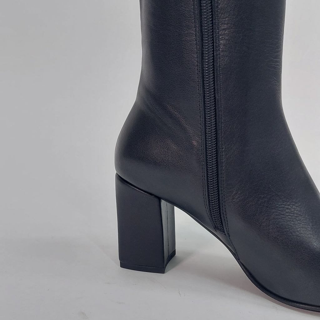 Blok peta srednje visine donosi stabilnost i udobnost, što ih čini idealnim izborom za svakodnevno nošenje – od poslovnih kombinacija do večernjih izlazaka. Minimalistički kroj i glatka koža daju ovim čizmama bezvremensku notu, a crna boja omogućava jednostavno kombinovanje sa različitim stilovima.