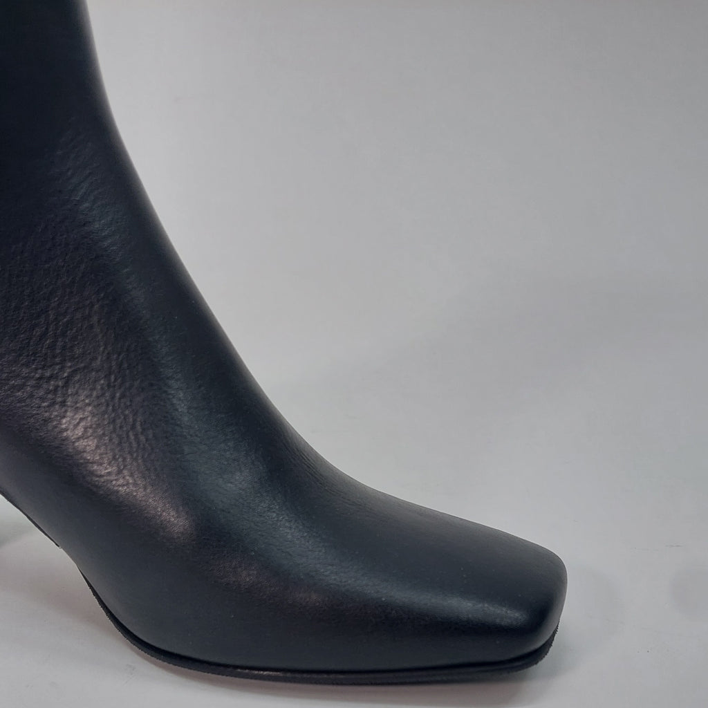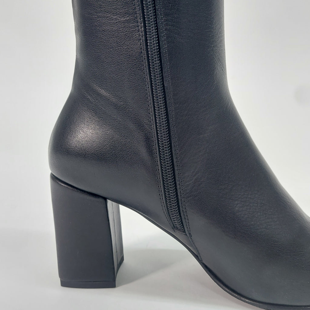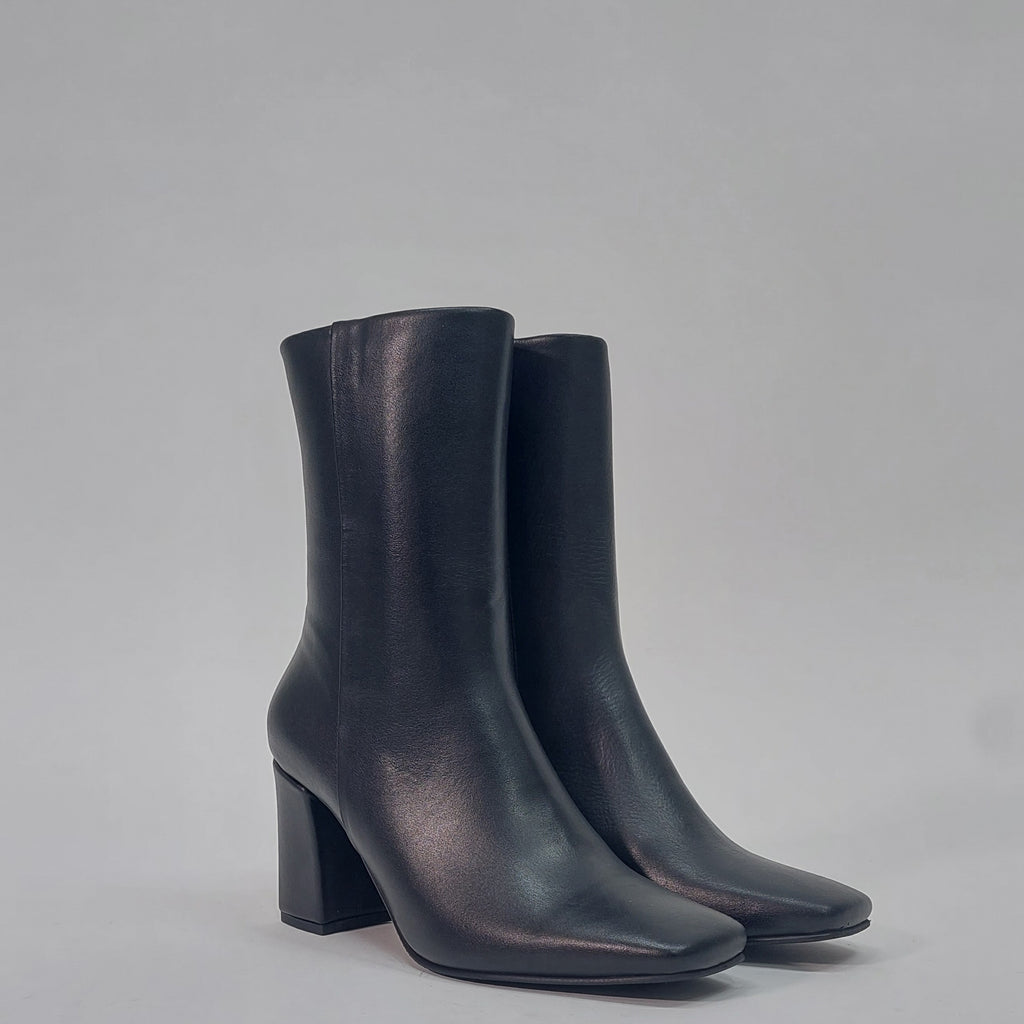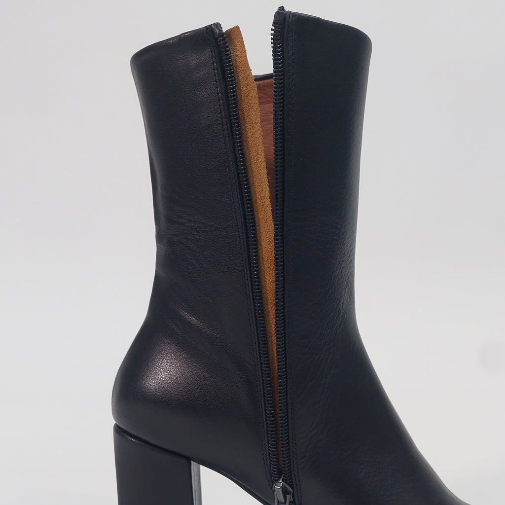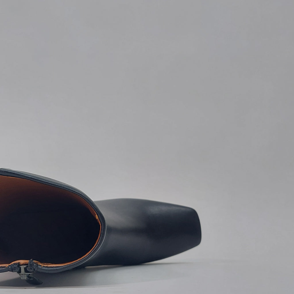 Blok peta srednje visine donosi stabilnost i udobnost, što ih čini idealnim izborom za svakodnevno nošenje – od poslovnih kombinacija do večernjih izlazaka. Minimalistički kroj i glatka koža daju ovim čizmama bezvremensku notu, a crna boja omogućava jednostavno kombinovanje sa različitim stilovima.